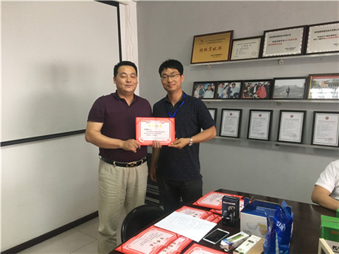 洛陽泰斯特探傷技術(shù)有限公司副總羅綱親自為獲獎?wù)哳C發(fā)證書和獎品。